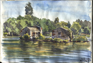 Since I've been there in a day of uncertain weather, I couldn't manage to make more than one sketch, and even this one partially under the umbrella. The rest of the journey was of promenade and contemplation.